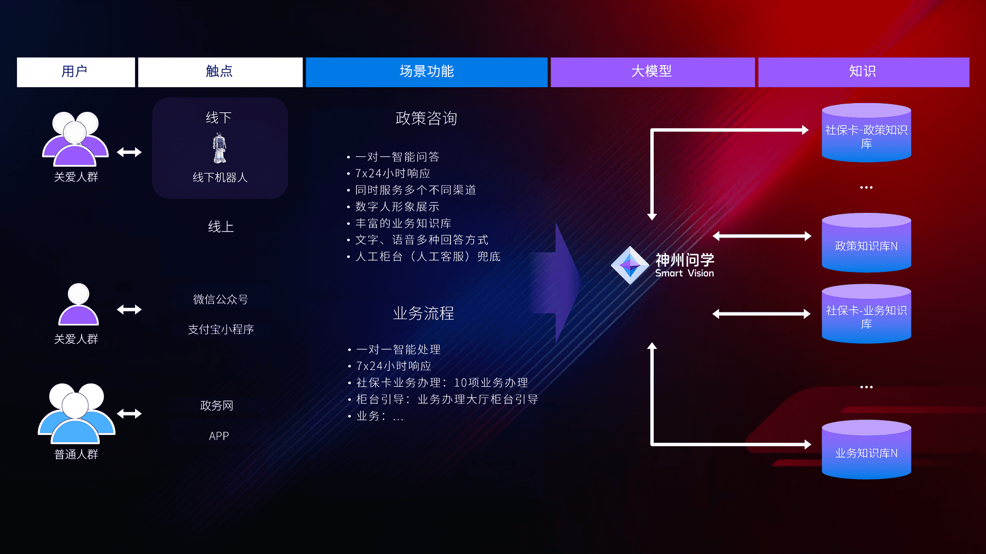 在服务大厅部署客服机器人,,在线上应用和小程序配置客服数字人,,724小时为群众解答常规问题,,客服机器人无法处理的,,转现场人工处理。。